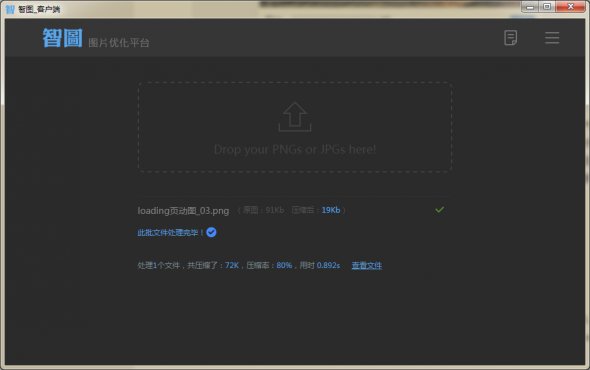 ps:其实如果对比web版本的在线压缩,你可能会发现客户端版本缺少了一项很好用的功能——实时对比。没错,我们考虑到客户端的轻便性和实用性,不想客户端做得那么”重“,也不想留太多的空隙让用户去思考究竟需要如何做取舍。你也可以看到我们的用户界面非常简洁,其实我们后台做的事情很多,但是对用户保持透明,有时候也不失为一种好的选择。