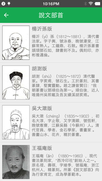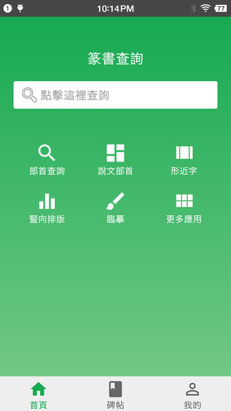 专业的篆书信息查询软件,该软件支持部首查询,说文部首,形近字,竖向排版等等信息查询,非常方便,对篆书感兴趣的可以来当易使用!
