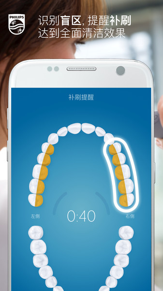 飞利浦Sonicare应用——精准覆盖各个部位,帮您养成完美的口腔卫生习惯,借助飞利浦Sonicare钻石亮白智能系列,您可以跟踪已刷部位、补刷遗漏部位、聚焦问题部位,轻松掌握完美的刷牙技巧。