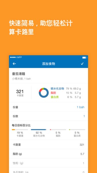 - 记住您最喜爱的食物,一次添加多个食物,保存并添加所有餐食等。再也没有比MyFitnessPal减肥宝 更快或更简单的应用程序了。
