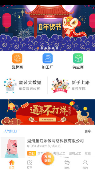 加工厂、面辅料提供方、物流承运方(有服装生产、原料提供、物流及其他服务提供能力的一方),在app注册填写基本信息并验证身份之后,打开接单按钮,即可接单,接单之后生产过程需要及时更新订单状态以供下单方查看。