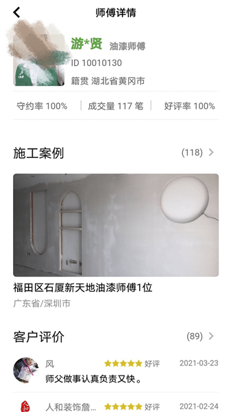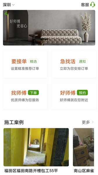 让您快速匹配到需要的装修师傅,打造师傅个人品牌,这里帮客户筛选好和管理好师傅,这里是装修公司和工长都在用它找师傅。极速相应10秒下单,30分钟内师傅抢单。拥有更加专业的维修安装服务,适合有需求的你,为你带来最好的服务。