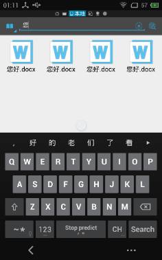 点击下方工具栏中的搜索,就会在屏幕上方出现搜索框,可以输入关键字或者文件后缀名进行搜索,如图。