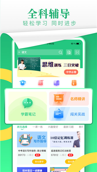 涵盖初一初二初三课程,帮助学生拓展初中知识,全面学习高效提分,超多名师直播课堂。在线找到你想要学习的课程,还能实时互动,帮助学习差的小伙伴们快速提升自己的成绩!