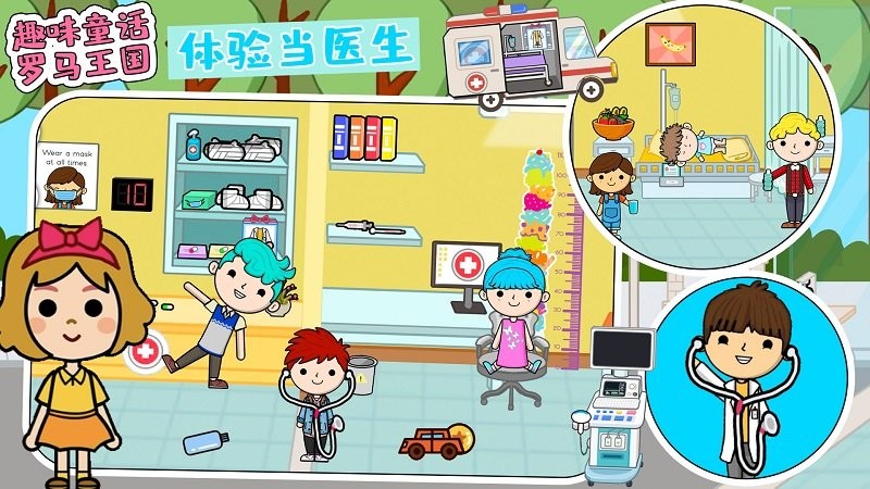 3、所有儿童现在都可以在学校玩耍,在诊所扮演医生;