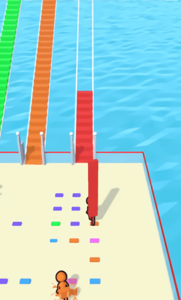 2、众多玩家一起来展开竞速对决,收集木板搭建桥梁抄近道前进。
