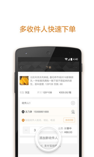 批量下单,多收件人多商家多商品一并下单