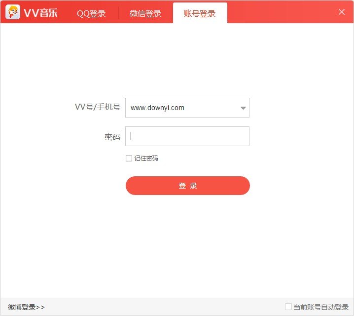 答:vv音乐支持多种账号接入方式,用户可以直接用qq、人人、微博等账号直接接入,也可以用手机注册vv号。