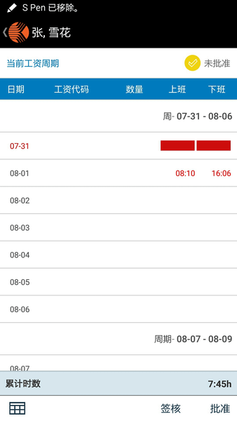 2、想象一下管理人员在排队购物时,顺便在他的手机上审核处理了手下员工的打卡异常,或者在其它碎片时间通过手机快速批准了员工考勤卡,这将是何等的高效和便捷。