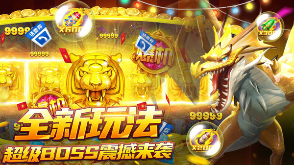 玩法:炸弹,超强轰炸;一网打尽,全屏追捕;能量圈,双倍收益,超强的重炮打击感