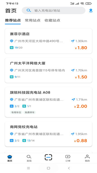 2、只需要打开app就能获取周边的充电站,寻找充电站会更快捷