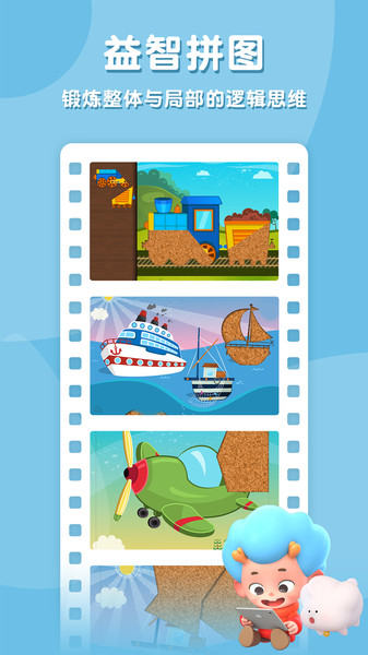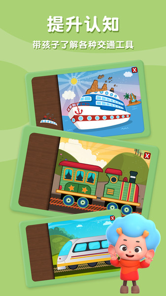 是网易出品的儿童教育生态品牌,专为0-6岁学龄前儿童定制全方位创新型教育方案,旨在打造高品质的国民级儿童家庭教育内容平台,为中国家庭提供优质可信赖的儿童教育产品,定义“屏幕”新时光。即使是第一次玩游戏的孩子也能轻松的学会,当孩子上手之后即可自主的开始拼图,在这个早教app手机版的目的之下,孩子在拼图游戏之中可以潜移默化的学习知识,主要是认知交通工具。