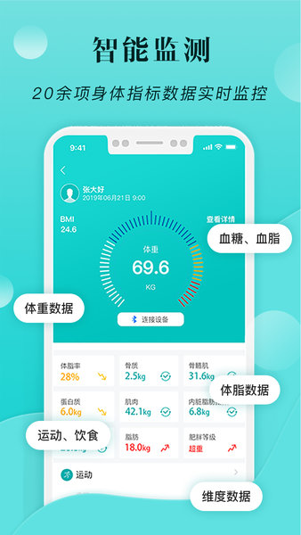 2.20余项身体指标数据实时监控,全面了解自己。
