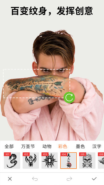 ——多款纹身贴纸想尝试多款纹身?这里应有尽有!使用纹身编辑器,分享你独特的纹身。从霸气到酷炫,花臂可以来一套?