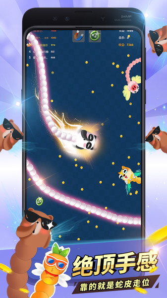 1、最主要最欢乐的玩法就是小蛇吃大蛇,只要你敢拼,没有什么是不可能的。
