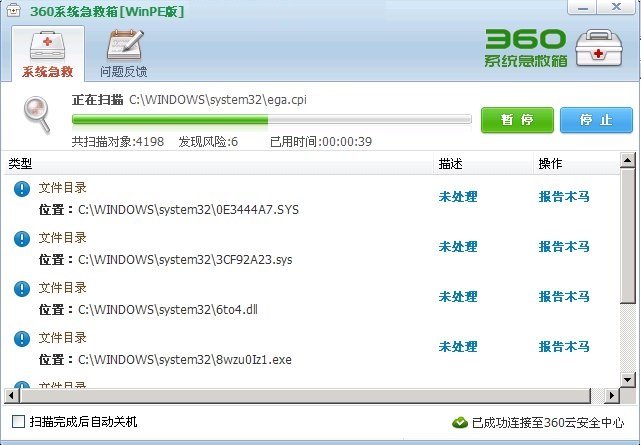 系统紧急救援,各类传统杀毒软件查杀无效的情形;电脑感染木马,导致360无法安装或启动的情形。
