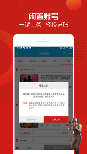 一键租号app让你畅玩所有的大型游戏,体验高端账号的快色,这里拥有超多的账号资源,用户只要注册选择自己喜欢的游戏,选择账号就可以一键下单,及时到账让你畅玩游戏。