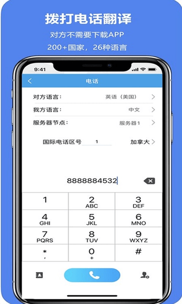 【电话翻译】给国外用户打电话翻译,打对方手机自动翻译,打对方固定电话也可以翻译,打客服电话自动翻译,通话对方不需要下载app;