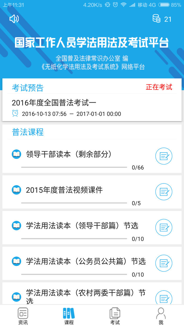 “法宣在线”是北京法宣在线科技有限公司旗下应用平台移动版,主要从事司法部、全国普法办批准研发的领导干部、公务员、企业经营管理人员等全民在线学法及考试项目(依法治国重点工程),方便学员随时在线学习。