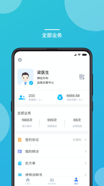 连接关心堂平台所有医生,支持上下转诊,互相推荐等功能;