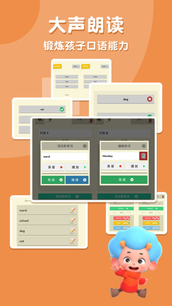 小蜜蜂单词书不仅锻炼拼写,更提升小朋友的口语能力,大声朗读出你学习到的单词,快来成为单词大王吧!