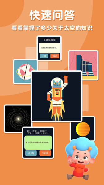 太空猫历险记游戏是非常炫酷好玩的儿童启蒙益智游戏,在这里你可以跟随主角们的脚步,在无尽的太空之中冒险,寓教于乐,方便有趣,带给你神奇的感官享受,一起来成为小小宇航员,跨越星际吧!