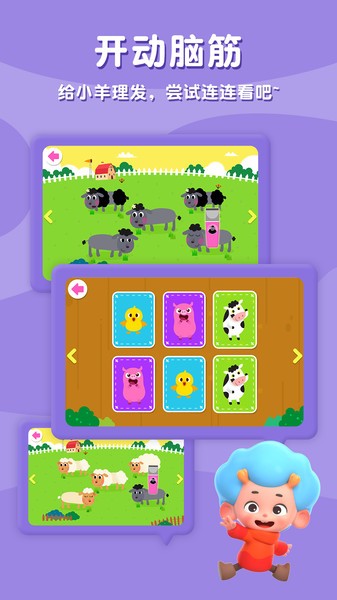1、在鹅妈妈的世界,我们可以进行连连看、拼图、帮助小羊理发、帮助蜘蛛跳过水坑……