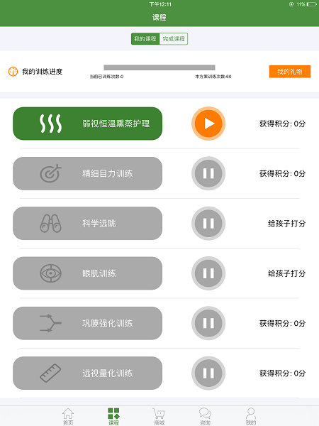 用户通过填写视力数据、上传视力检查报告,匹配相应的视力训练方案;