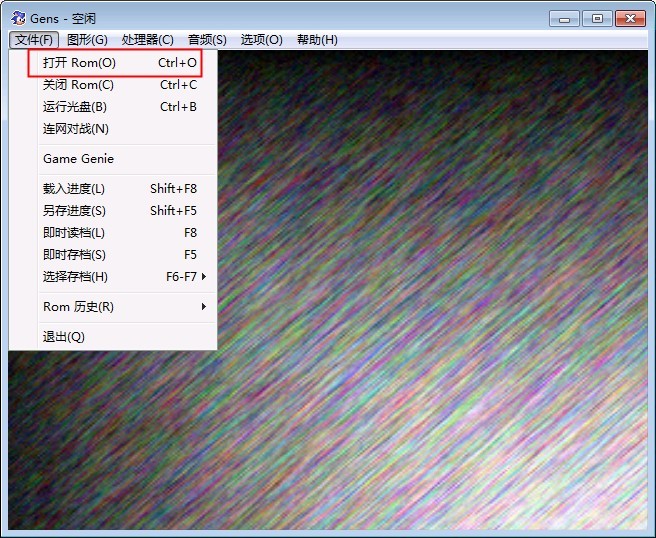 4.在文件中选择“打开rom”选项,导入游戏文件,在这里以经典md游戏大锤恐龙为例子