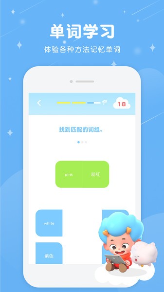 -英语单词的拼写、翻译、听力理解等多方位立体练习方式,逐步建立和深化英语知识。