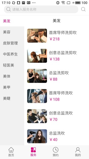展示各种养生服务的产品,有技师主页,服务具体内容展示,可以进行服务产品的时间预约和技师的预约,技师列表可以进行根据价格,服务,收藏量等进行排序,选择心仪的技师或者服务,然后进行预约。