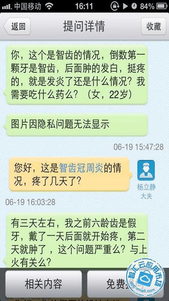 青岛用户可通过图文、语音电话等方式提出健康问题,30分钟内获得二甲、三甲执业医师解答。医生实名回复,用户匿名提问,保护用户隐私。