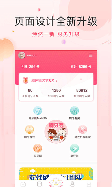 实时展示正在刷牙、今日刷牙、累计刷牙人数;牙齿美、笑起来更甜美