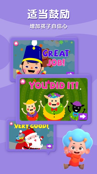 碰碰狐圣诞颂歌手机版内的歌曲简单易学,小朋友们可以轻松学会英文歌,还有益智小游戏和彩色的界面都能促进智力思维发育。家长和孩子可以一起互动进行亲子教育,给孩子一个健康成长环境。