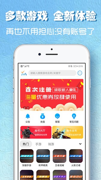 娱梦租号为用户提供超多热门游戏账号:王者荣耀账号、和平精英账号、手游cf枪战王者账号、火影忍者账号、绝地求生账号、cf账号、英雄联盟lol账号、qq飞车球球大作战账号等热门游戏高段位、炫装备、多皮服、v8大神账号租号体验。
