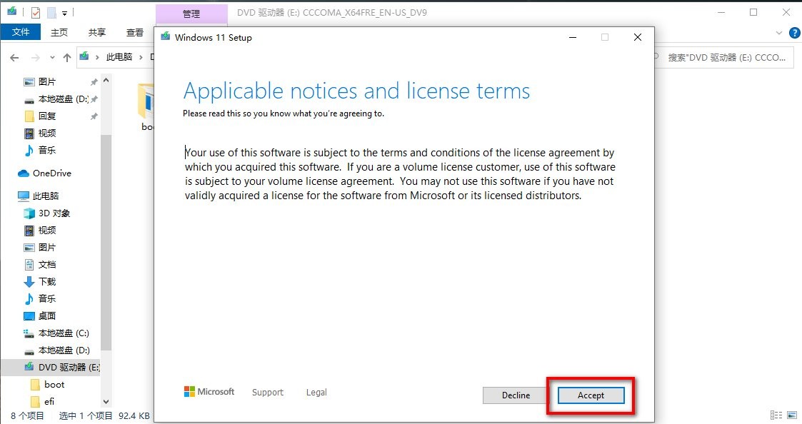 4、点击accept,同意许可协议。