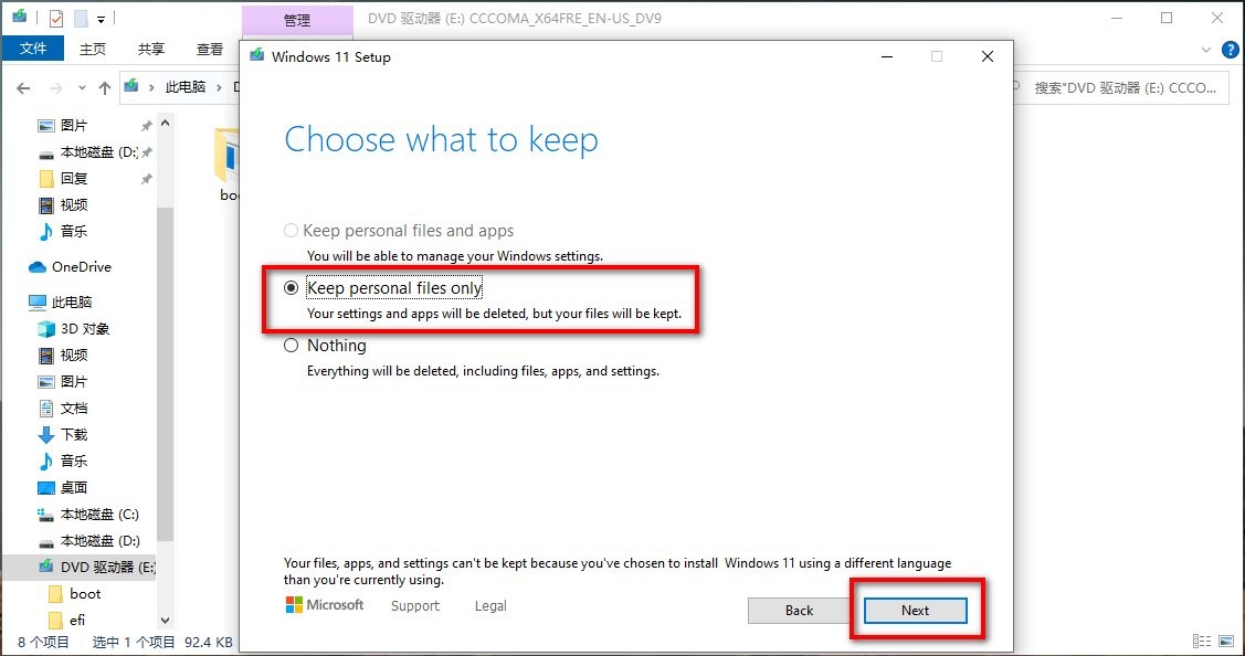 5、勾选keep personal files only 选项,点击next。