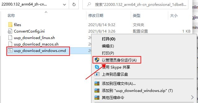 1、下载后解压软件,找到“uup_download_windows.cmd”选项,选择以管理员身份运行,部分电脑会出现报毒情况,忽略即可!