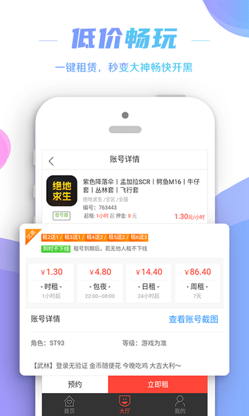 3、低价畅玩:一键租赁,秒变大神畅快开黑