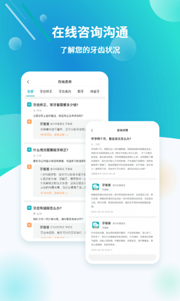 牙爸爸是一个专业的牙齿咨询和看诊的平台,有关牙齿的问题可以在软件上直接询问,会有专门的牙医医生来解答您的问题,牙齿相关的知识教您正确护牙,牙科医院的推荐让您看牙更简单。
