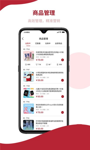 查看商品、管理库存、管理售价、上架下架,商家管理店铺必备神器。