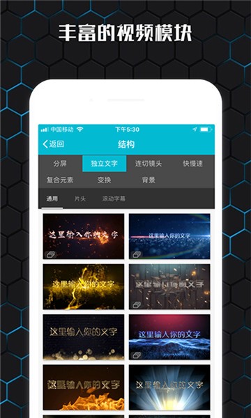 各种宣传大片、自由创作、旋转文字、自由拼接、切换展示、立体相册、动感时尚等都将在这里来展示,还有各种丰富的视频模块都是可以通过软件来为用户提供选择的。