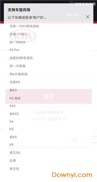 2、成功的登录以后,您可以选择“车型向导”,然后浏览支持连接的起亚车型信息