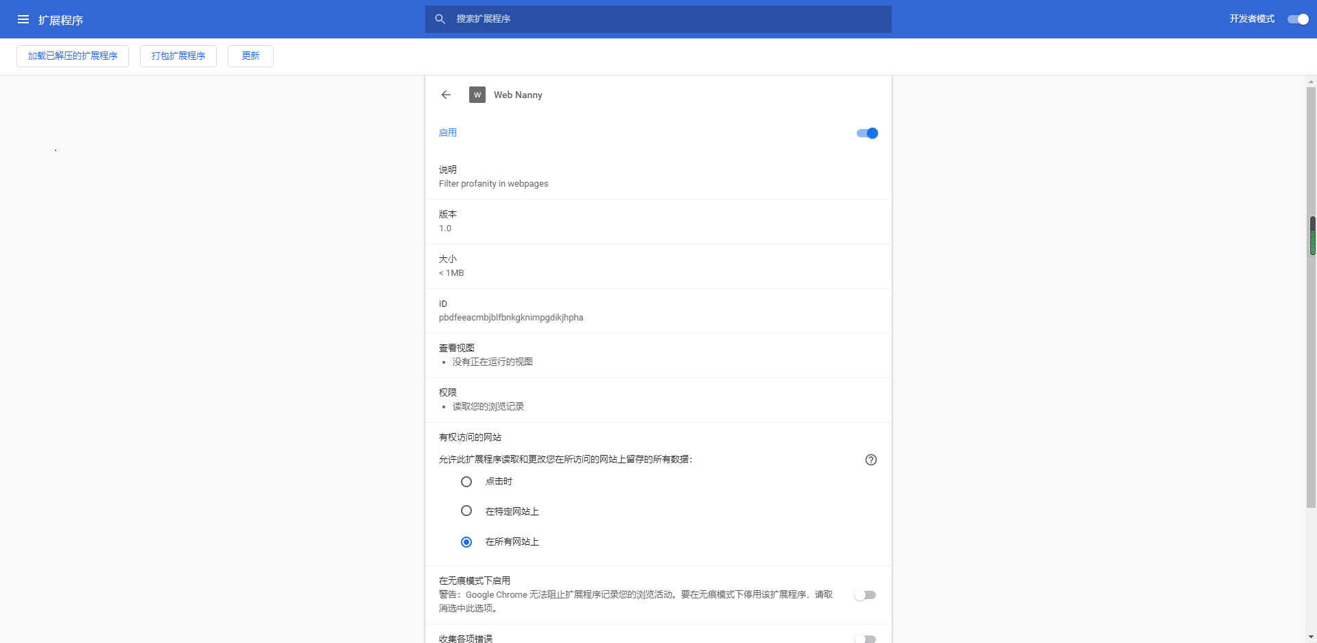 Web Nanny Chrome版为所有使用的用户带来更加干净的网络环境,让用户在所有的网页上面都可以屏蔽脏话和关键词,让用户不想看到的词汇在网络上面都被屏蔽看不到。