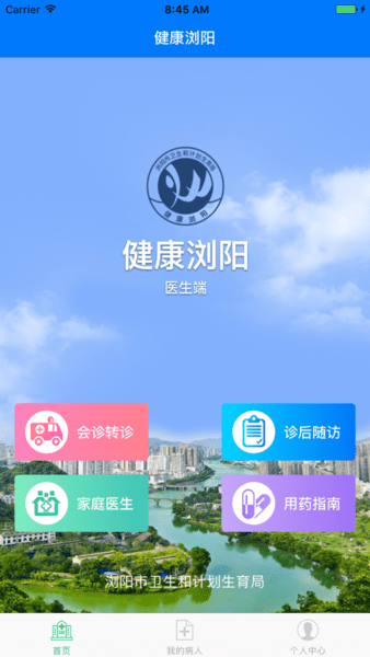 浏阳市医生使用的会诊转诊平台和诊后随访平台。乡镇医生可以使用该APP向上级医院发起远程会诊请求,也可以把患者转到上级医院就诊,上级医院医生也可以把患者转到乡镇卫生院进行康复治疗。医生能方便的使用APP进行住院随访、门诊随访、家医随访和体检随访。