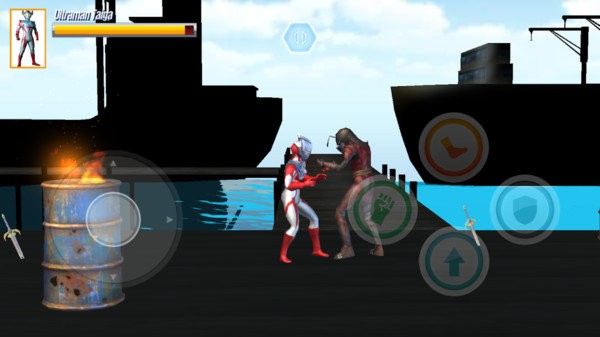 使用操纵杆运行奥特曼,然后攻击按钮攻击敌人