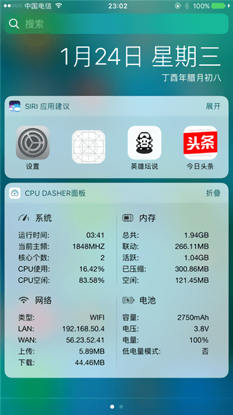 设备概述囊括了当前设备的系统版本号、设备类型、可用的存储器大小、是否支持视网膜显示、MAC地址和IP地址。如果在没连接网络的情况下,IP地址显示0.0.0.0。然后,后面就是比较精彩的部分了,CPU信息。这个是目前手机中鲜有的,里面包括了CPU类型、CPU架构(ARMv7、ARMv7F等)、核心个数、字节序(肯定是小端的)、Cache行大小(有些设备是32字节,有些设备是64字节)、L1指令Cache大小、L1数据Cache大小、L2 Cache大小、L3 Cache大小,然后是CPU主频、总线频率,是否在用户模式下支持性能监视器
