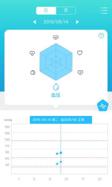 脉迹是用来辅助测量仪器来检查用户血压的软件,时刻掌握身体血压的状况,测量结果保留并生成图表,让用户能关注到每天血压的变化,对有异常的数据及时察觉。