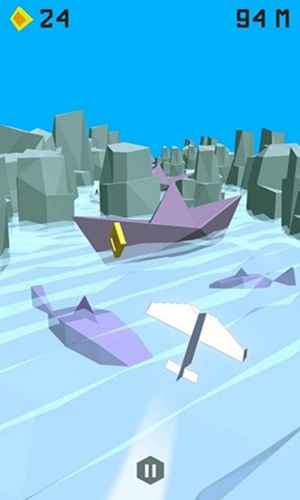 这款游戏不仅能带给你全新的低模游戏画面,还能让你在游戏的过程中欣赏到优美的自然风景哟!简洁的游戏画面,玩家需要控制一架纸飞机完成飞行任务,我们需要越过高山飞过河流,飞行的距离越远,得分也就越高。