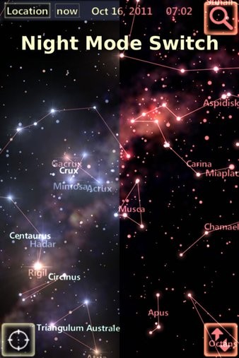当您将设备指向天空时,自动隐藏所有菜单并进入 AR 跟踪模式。